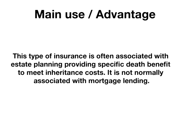 You select the sum to be insured for a fixed monthly/annual premium. The sum insured is maintained throughout your life and you can build up an investment amount, or surrender value in the policy. So long as the policy has an investment value or you continue paying the premiums. Providing the policy remains in force up to your death it will pay out the agreed death benefit.